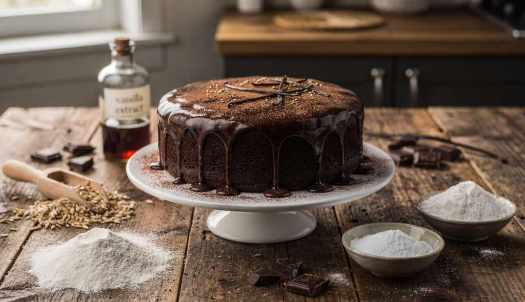 La dégustation commence avec les yeux. Pour mettre en valeur votre création, oubliez l’assiette plate. Présentez le gâteau entier sur un plat de présentation à gâteau, idéalement sur pied pour lui donner de la hauteur et en faire la star de la table. Au moment de servir, utilisez une pelle à tarte pour découper des parts nettes et les déposer délicatement dans de jolies assiettes à dessert. Pour la touche finale, vous pouvez saupoudrer un voile de cacao en poudre sur l’assiette avant d’y déposer la part, ou ajouter quelques copeaux de chocolat réalisés en grattant une tablette avec un couteau économe. Servez-le tel quel, sa simplicité est sa plus grande force.